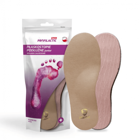 Wkładki dedykowane dla dzieci ze zdjagnozowanym płaskostopiem podłóżnym które potrzebują mocnego wsparcia stopy podczas terapii.